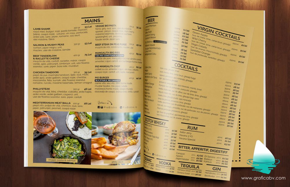 Daca sunteti in cautarea unei persoane care sa va ajute cu servicii de grafica meniu restaurant, grafica meniu terasa, design meniu restaurant, grafica meniuri, grafica meniu fast food, grafica meniu pizzerie, Design Meniu Pio Bistro, grafica meniu bistro, grafica meniu lounge, ma puteti contacta in orice moment prin e-mail, telefon sau formularul de contact prezent pe acest site AICI sau chiar prin facebook chat.